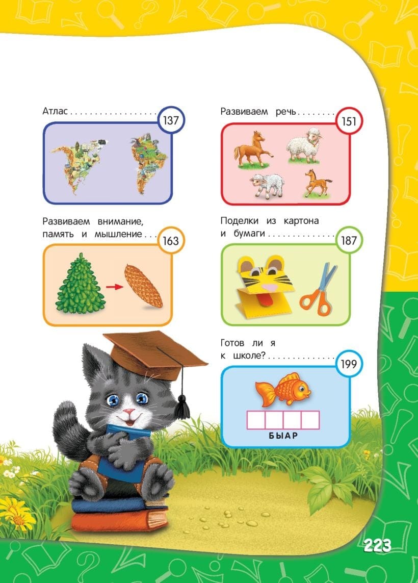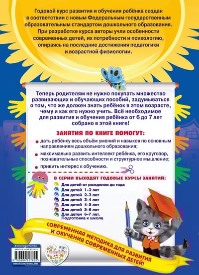 Книга подготовлена в соответствии с новым Федеральным государственным образовательным стандартом дошкольного образования и воспитания и станет прекрасным помощником в обучении и развитии детей 6-7 лет. Выполняя занимательные задания, расположенные по мере усложнения и ориентированные на реальные возможности детей этого возраста, ребенок научится читать, считать, решать примеры и задачи, мастерить поделки из бумаги, расширит знания об окружающем мире. Родители получат возможность оценить уровень готовности ребенка к школе и, заметив проблемные зоны в его знаниях, смогут легко их ликвидировать, позанимавшись дополнительно по этой теме. Книга заменит множество развивающих и обучающих пособий. Адресована талантливым дошкольникам, родителям и педагогам.