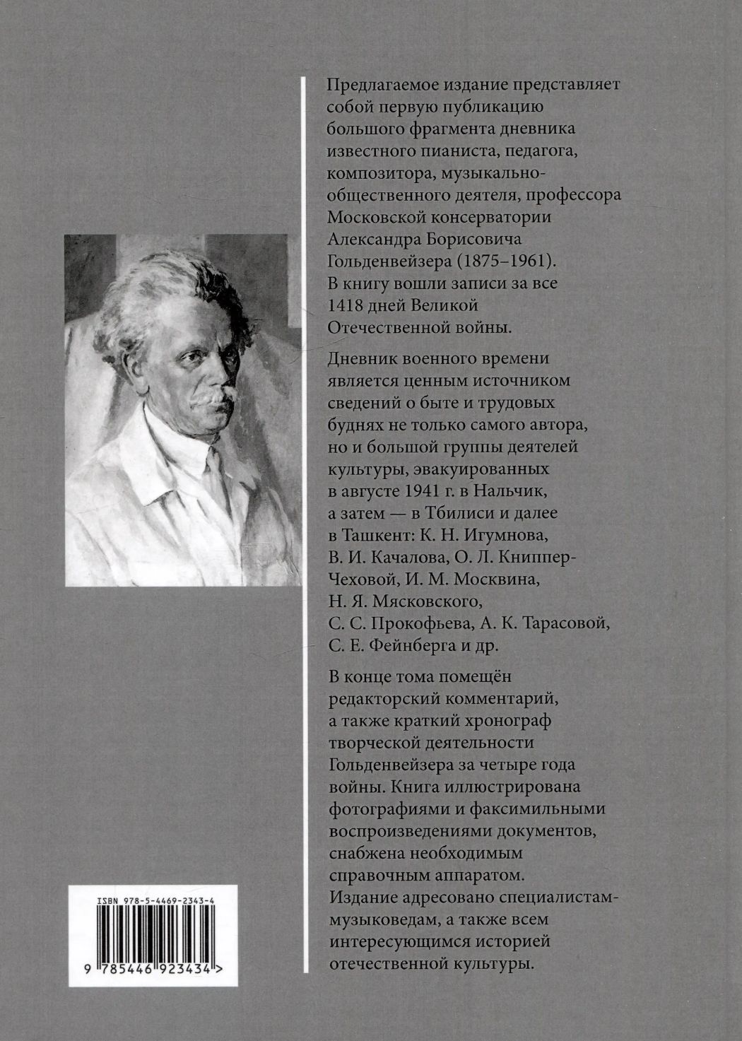 Предлагаемое издание представляет собой первую публикацию большого фрагмента дневника известного пианиста, педагога, композитора, музыкально-общественного деятеля, профессора Московской консерватории Александра Борисовича Гольденвейзера (1875–1961). В книгу вошли записи за все 1418 дней Великой Отечественной войны.