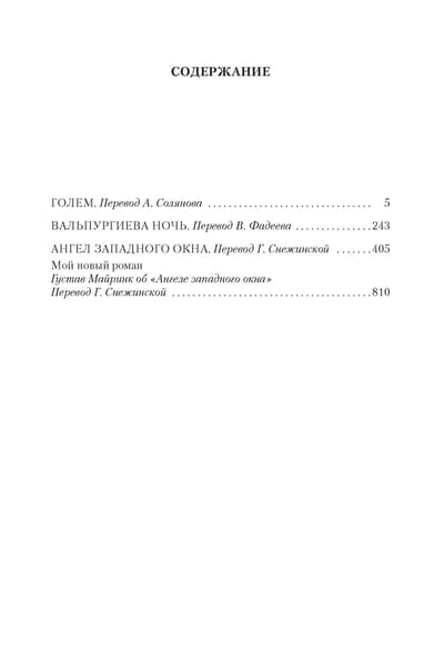Густав Майринк и Франц Кафка — самые яркие представители так называемой Пражской литературной школы. Но если Кафка при жизни был известен лишь узкому кругу ценителей, то слава Майринка гремела по всей Европе. А после издания романа «Голем» вышла далеко за ее пределы. Его книгами зачитывались (и зачитываются до сих пор) как любители легковесной «литературы ужасов», так и рафинированные интеллектуалы, находящие в текстах Майринка многочисленные аллюзии и хитро упрятанные истины древних мистических учений. В настоящее издание вошли три самых известных романа мастера мистической прозы: «Голем», «Вальпургиева ночь» и «Ангел западного окна», самое значительное из всех произведений Майринка, задуманное им как итог всего творчества.