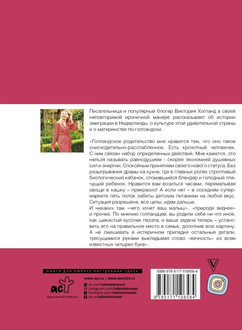 Виктория Хогланд - писатель, пиар-консультант и главный редактор Trendz, онлайн-медиа для русскоязычных в Европе. Являясь популярным блогером, Виктория в своей фирменной ироничной и очень смешной манере рассказывает об истории эмиграции в Нидерланды, о культуре этой удивительной страны и о материнстве по-голландски.
