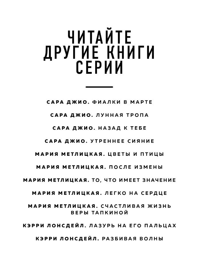 Книги Марии Метлицкой любимы миллионами. И каждый находит в них что-то свое. Но есть то, что отмечают все без исключения читатели: эти книги примиряют с жизнью и дарят надежду.