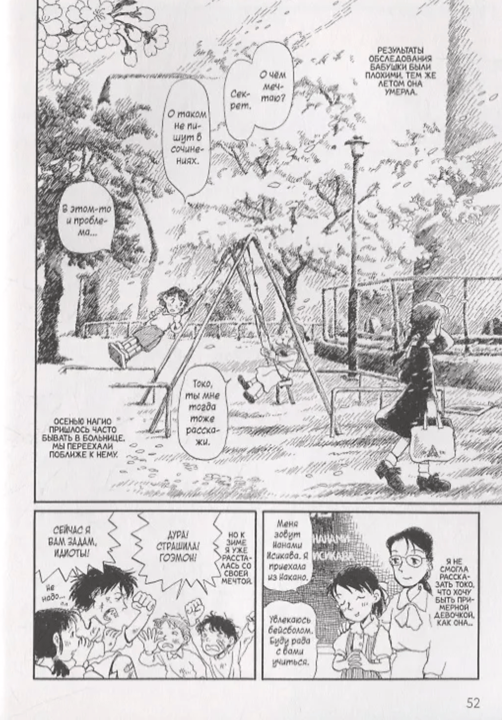 Трудно поверить, что манга с таким поэтическим названием и таким нежным рисунком может рассказывать о самом страшном для японцев воспоминании Второй мировой войны - атомном взрыве над Хиросимой. Герои этой книги - самые обычные люди из нескольких послевоенных поколений одной семьи. Раз за разом из глубины страшных воспоминаний, о которых все хотят забыть, пробивается один и тот же вопрос: «Почему я живу, а они нет?» Но болезненная рана не заживет, если про нее просто забыть. Спустя десятки лет после взрыва бомба по-прежнему заставляет страдать выживших и даже их детей и внуков. Губительными оказываются не только долгосрочные последствия радиации, но и общественное отчуждение, равнодушие и страх перед зараженными и их семьями.