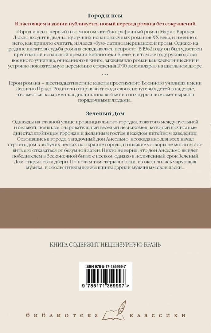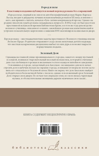 «Город и псы» — во многом автобиографическая история, повествующая о нелегкой жизни курсантов военного училища. «Зеленый дом» также основан на личных воспоминаниях писателя и приглашает читателя в путешествие, полное колоритных персонажей и необычных сюжетов.