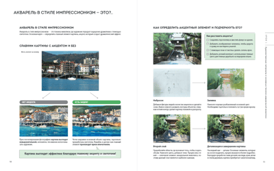 Книга сочетает в себе практическое обучение и подборку референсов для вдохновения: от разбора инструментов до воссоздания своих первых городских изображений на бумаге: базовые приемы, пошаговые уроки, разнообразие примеров (городские улочки, парки, железная дорога и т.д.), советы по выбору инструментов, авторские секреты по работе с акварелью и много другое!