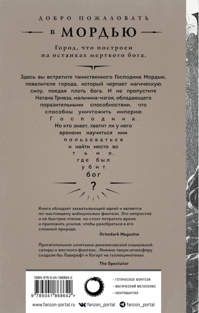 В трущобах города, разрушаемого морем, со своими родителями влечет жалкое существование мальчик по имени Натан Тривз. Но однажды отчаявшаяся мать продает его таинственному Господину Мордью, который незримо правит городом. Господин получает свою магическую силу, питаясь останками бога. Однако у Натана, несмотря на его низкое происхождение и собственные страхи, тоже есть сила, которая превосходит все, что когда-либо знал или умел Господин. Сила достаточно велика, чтобы разрушить все, что он построил. Если только Натан узнает, как ее использовать. И вот Господин начинает плести интриги, и Натану придется столкнуться с предательством, раскрыть древние тайны и свести личные счеты странных обитателей города, чтобы прийти к месту, где был убит бог и царит вековечная тьма.