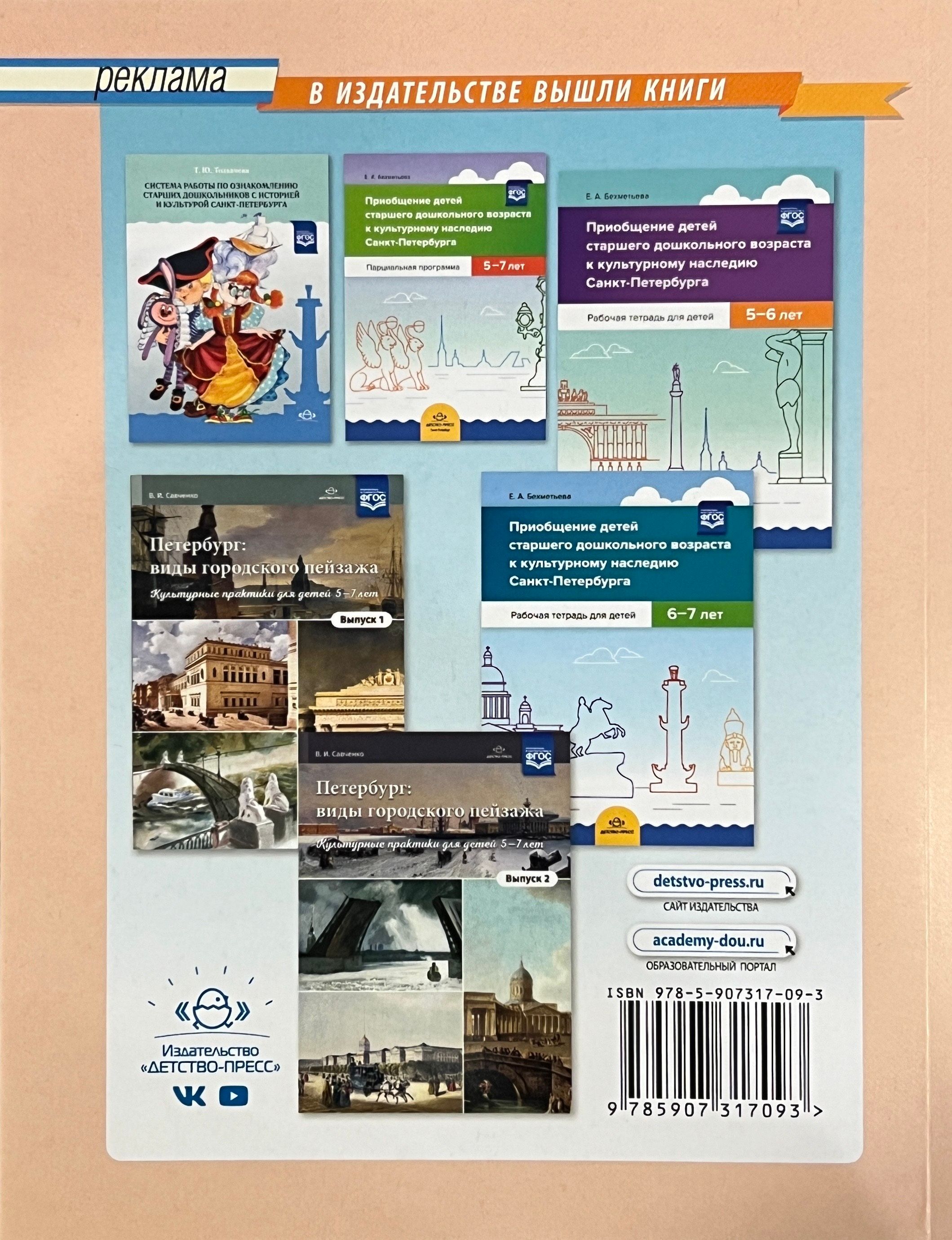 В пособии представлены задачи и содержание работы детского сада по ознакомлению старших дошкольников с культурным наследием Санкт-Петербурга.