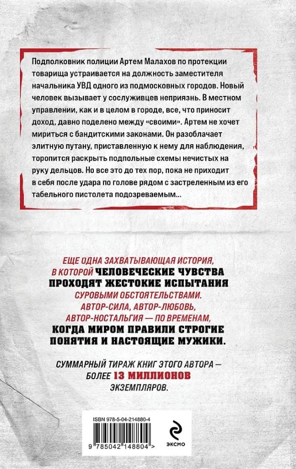 Подполковник полиции Артем Малахов по протекции товарища устраивается на должность заместителя начальника УВД одного из подмосковных городов. Новый человек вызывает у сослуживцев неприязнь. В местном управлении, как и в целом в городе, все, что приносит доход, давно поделено между «своими». Артем не хочет мириться с бандитскими законами. Он разоблачает элитную путану, приставленную к нему для наблюдения, торопится раскрыть подпольные схемы нечистых на руку дельцов. Но все это до тех пор, пока не приходит в себя после удара по голове рядом с застреленным из его табельного пистолета подозреваемым…