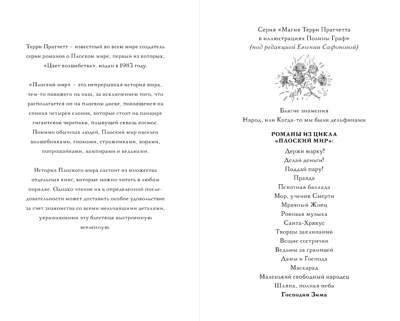 Переиздание знаменитого цикла «Плоский мир» сэра Терри Пратчетта, который стал легендой и классиком ещё при жизни. Оформление суперпопулярной в России художницы и писательницы Полины Граф. Внутри эскизы персонажей, дополнительная полноцветная иллюстрация на разворотной вклейке, рисунки на полях и портрет автора.