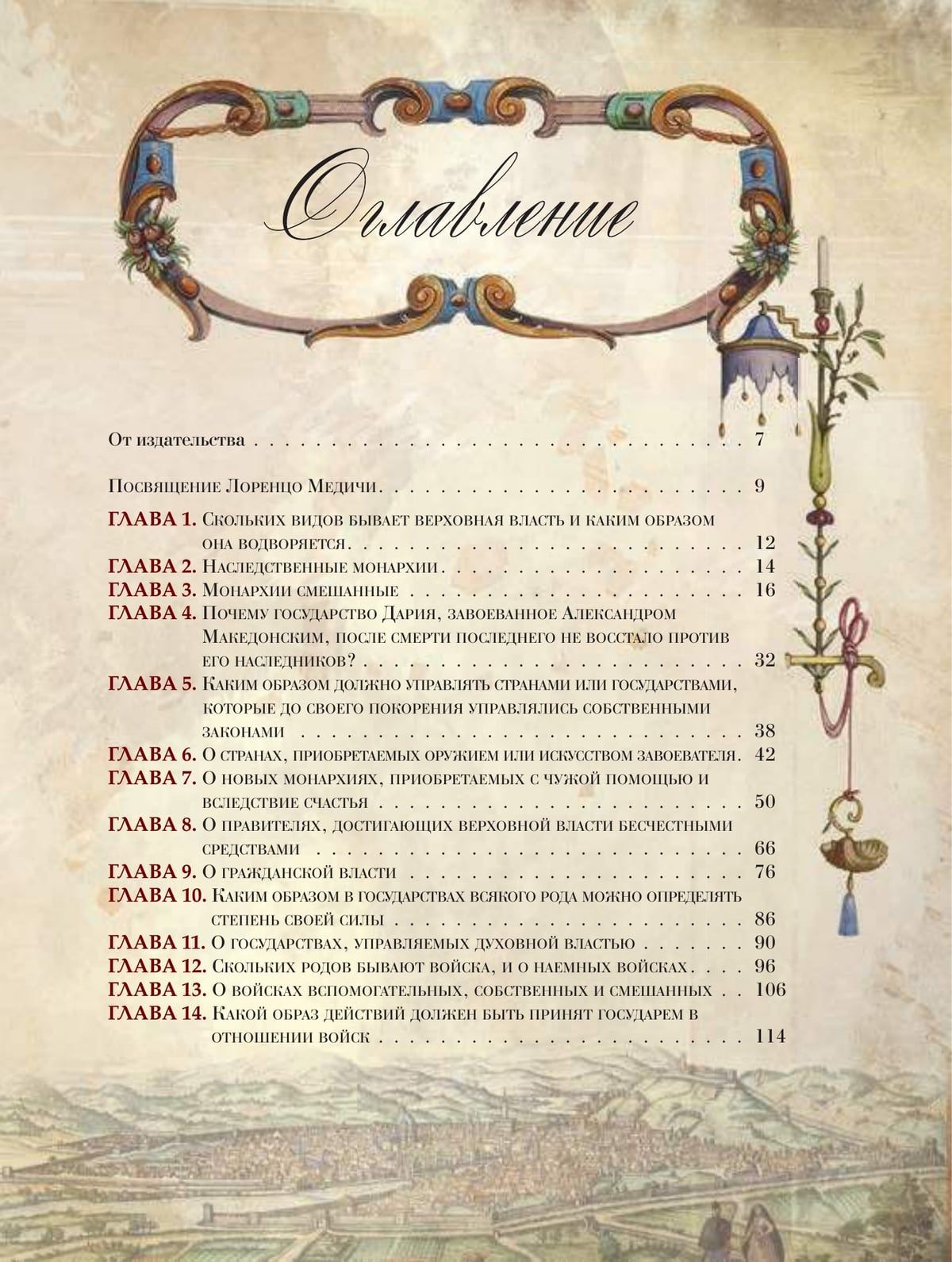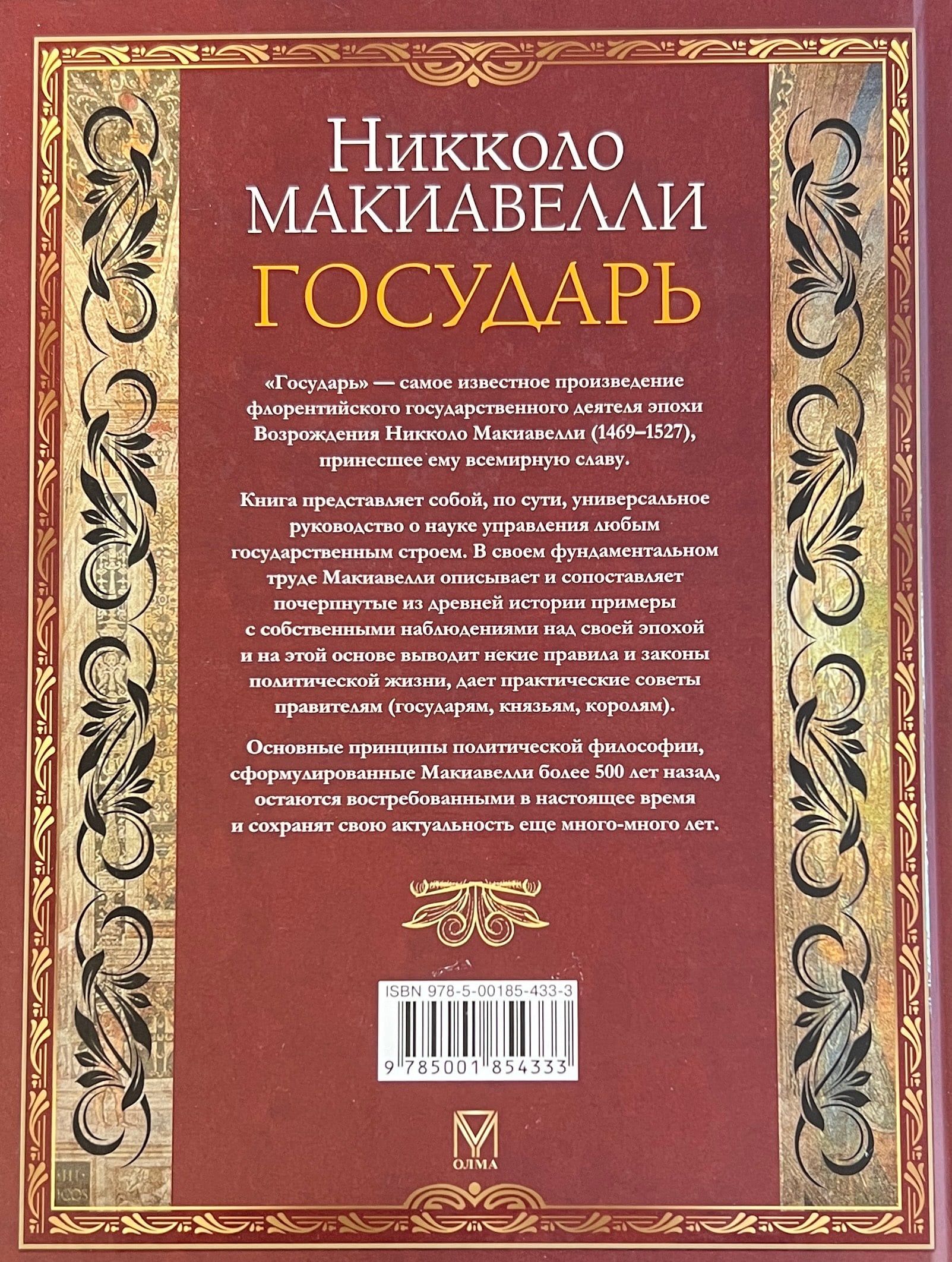 «Государь» — самое известное произведение флорентийского государственного деятеля эпохи Возрождения Никколо Макиавелли (1469–1527), принесшее ему всемирную славу. Книга представляет собой, по сути, универсальное руководство о науке управления любым государственным строем. В своем фундаментальном труде Макиавелли описывает и сопоставляет почерпнутые из древней истории примеры с собственными наблюдениями над своей эпохой и на этой основе выводит некие правила и законы политической жизни, дает практические советы правителям (государям, князьям, королям). Основные принципы политической философии, сформулированные Макиавелли более 500 лет назад, остаются востребованными в настоящее время и сохраняют свою актуальность еще много-много лет.