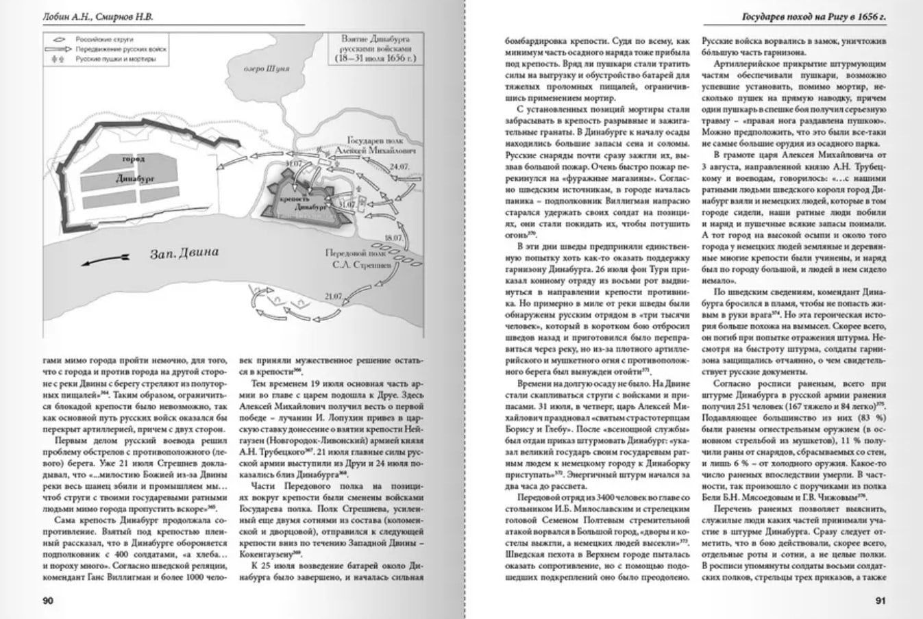 Новая книга историков А.Н. Лобина и Н.В. Смирнова посвящена походу царя Алексея Михайловича на город Ригу в ходе Русско-шведской войны 1656–1658 гг. В научной литературе эта неудачная кампания еще не была объектом пристального изучения, из-за чего в историографии сформировался определенный искаженный взгляд на военные события 1656 г. На основе документальных источников, шведских и российских, историки подробно проследили подготовку и организацию похода, боевые действия и осаду, причины снятия осады и отступление русских войск. Изложена полная хронология похода, буквально день за днем, неделя за неделей. Неудача под Ригой царя Алексея Михайловича дала новый толчок к реформам вооруженных сил.