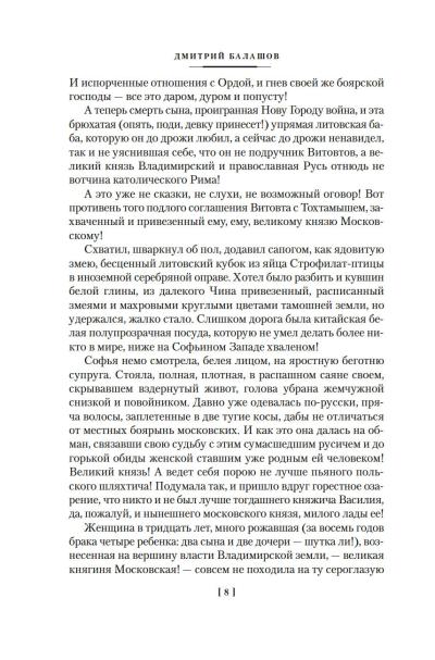 «Государи Московские» — монументальный цикл романов, созданный писателем, филологом-русистом, фольклористом и историком Дмитрием Балашовым. Эта эпическая хроника, своего рода грандиозный роман-эпопея, уместившийся в многотомное издание, охватывает период русской истории с 1263 до 1425 года и уже многие десятилетия не перестает поражать читателей глубиной, масштабностью, яркостью образов и мастерской стилизацией языка. Вместе романы цикла образуют хронологически выстроенное повествование, в котором события из истории крупных княжеств разворачиваются год за годом, отражены быт и нравы различных сословий и представлены судьбы, облик и характер сотен исторических деятелей. В настоящий том вошли последний, завершенный роман цикла «Воля и власть» (2000) и оставшийся неоконченным роман «Юрий», впервые опубликованный после смерти писателя в 2003 году. Восьмой и девятый романы цикла повествуют о годах правления Василия I Дмитриевича, князя московского и владимирского, сына Дмитрия Донского, и последовавшей за его смертью драматической междоусобице. Вопреки воле Дмитрия Донского, желавшего, чтобы Василию наследовал младший брат Юрий, князь определил семью под опеку тестя — литовского князя Витовта. Когда умер и Витовт, обойденный наследством Юрий Дмитриевич вступил в борьбу за московский престол, предъявив свои права на великое княжение в соответствии с завещанием Дмитрия Донского...