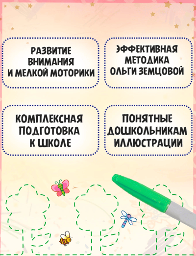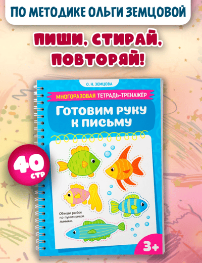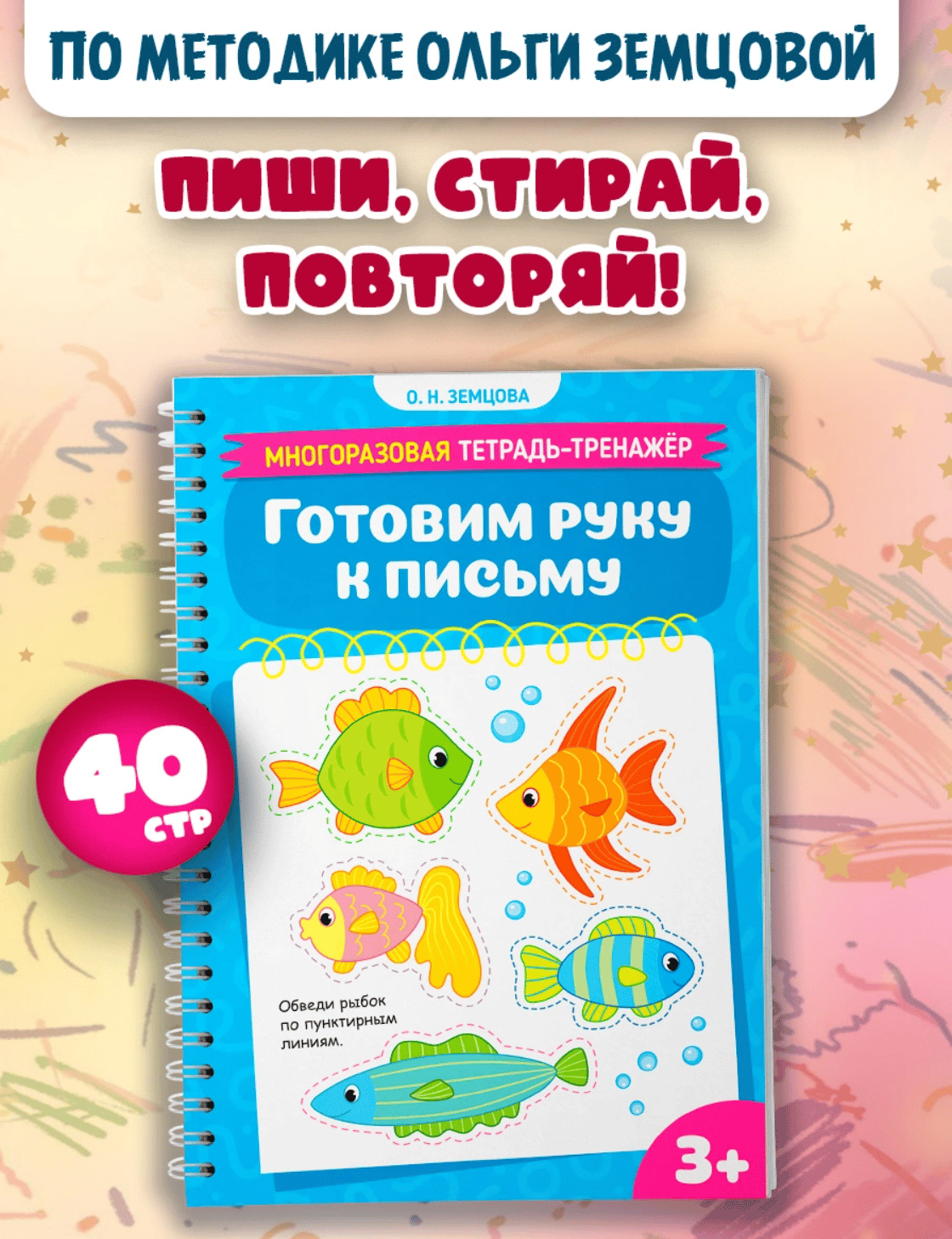 Многоразовая тетрадь разработана известным педагогом и автором развивающих пособий О. Н. Земцовой специально для того, чтобы сделать процесс обучения дошкольников по-настоящему интересным и удобным.