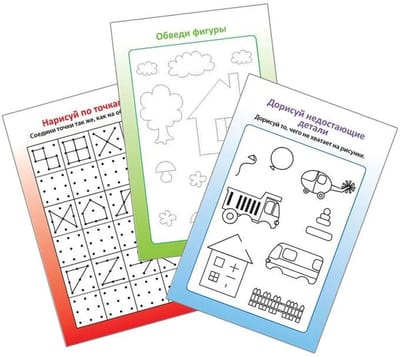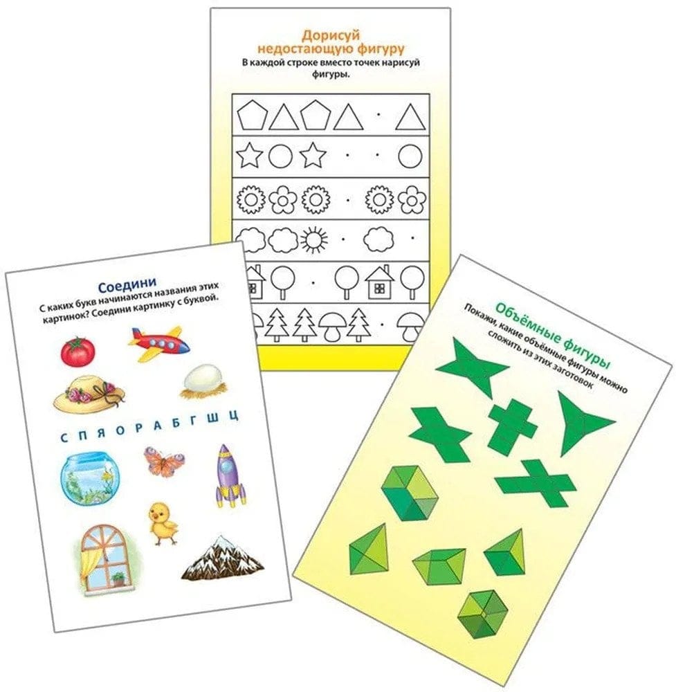 В набор входит 50 двусторонних многоразовых карточек с заданиями для подготовки к школе, играми, головоломками, задачками на внимательность, сообразительность, воображение и память, кроссвордами, лабиринтами и графическими пазл, заданиями на счёт, чтение, а также множеством интересных заданий для рисования.