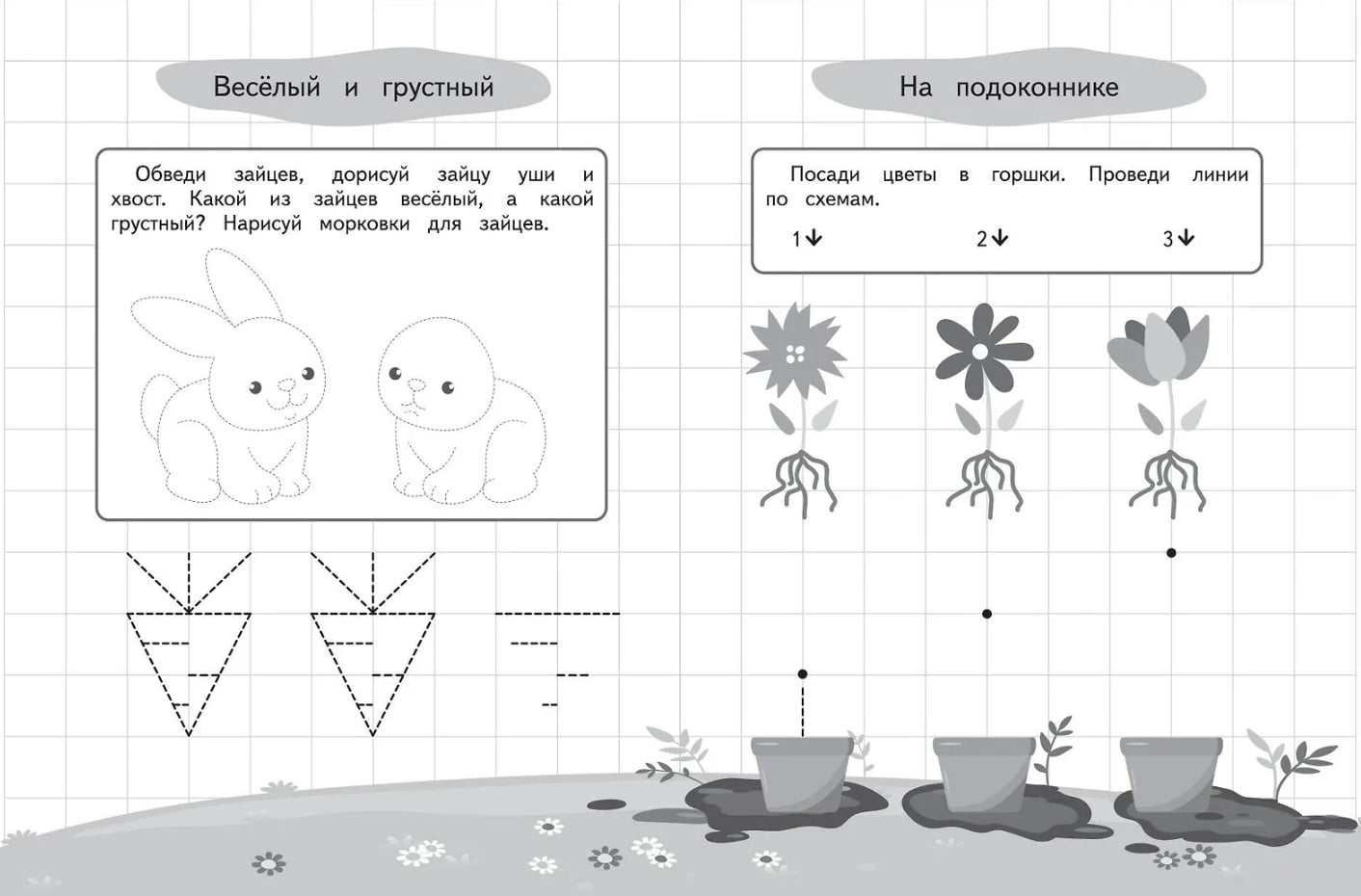 Прописи для будущих первоклашек. Рисуем по клеточкам