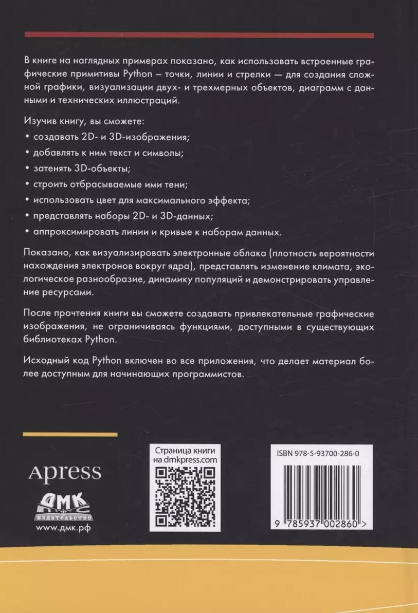 В книге на наглядных примерах показано, как использовать встроенные графические примитивы Python – точки, линии и стрелки — для создания сложной графики, визуализации двух- и трехмерных объектов, диаграмм с данными и технических иллюстраций.
