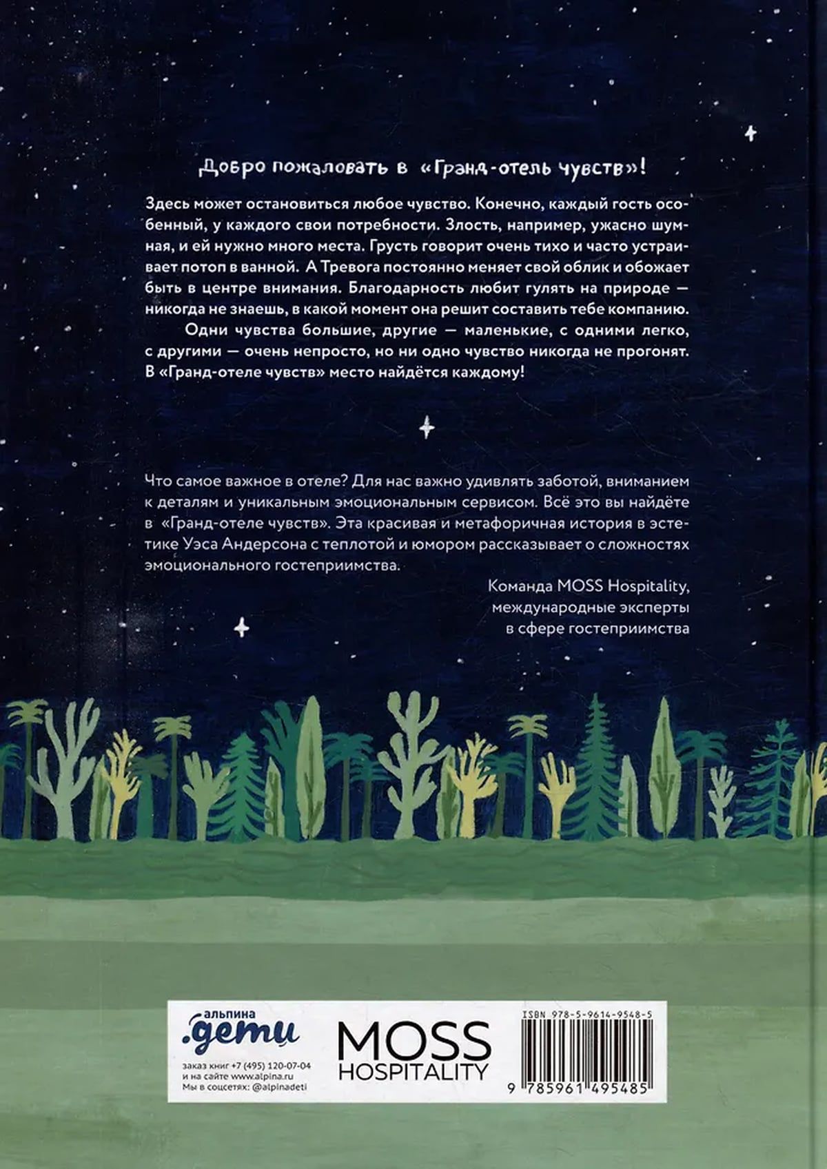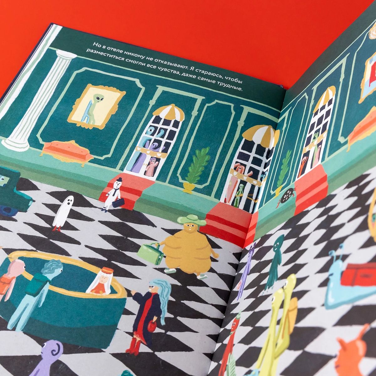 Добро пожаловать в «Гранд-отель чувств»! Здесь может остановиться любое чувство. Конечно, каждый гость особенный, у каждого свои потребности. Злость, например, ужасно шумная, и ей нужно много места. Грусть говорит очень тихо и часто устраивает потоп в ванной. А Тревога постоянно меняет свой облик и обожает быть в центре внимания. Благодарность любит гулять на природе — никогда не знаешь, в какой момент она решит составить тебе компанию.