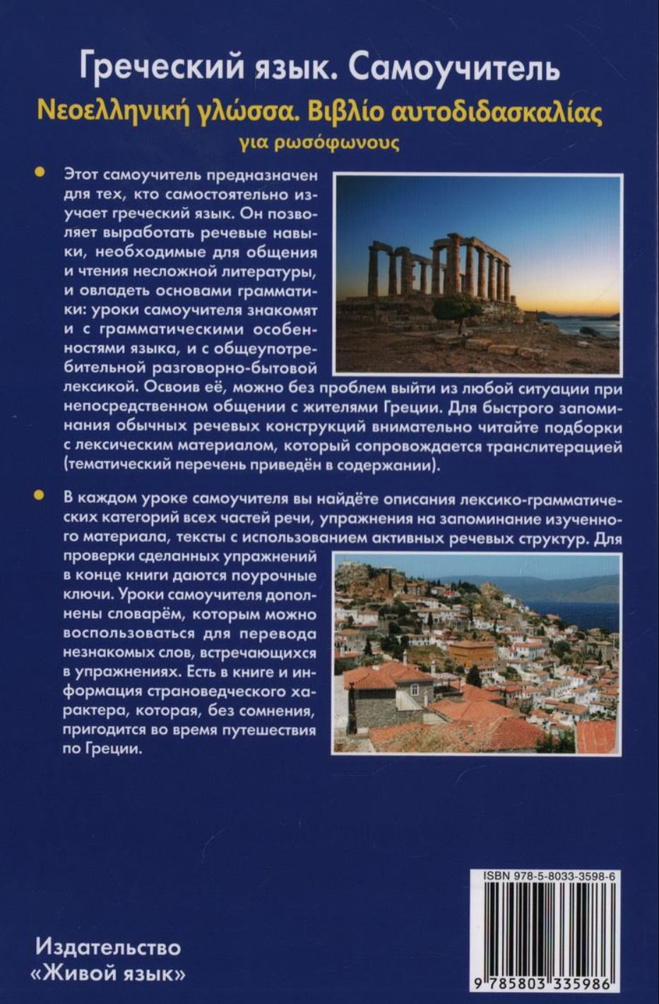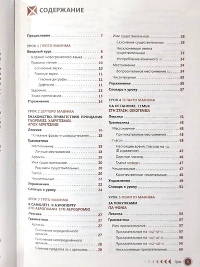 Этот самоучитель предназначен для тех, кто самостоятельно изучает греческий язык. Он позволяет выработать речевые навыки, необходимые для общения и чтения несложной литературы, и овладеть основами грамматики: уроки самоучителя знакомят и с грамматическими особенностями языка, и с общеупотребительной разговорно-бытовой лексикой. Освоив её, можно без проблем выйти из любой ситуации при непосредственном общении с жителями Греции. Для быстрого запоминания обычных речевых конструкций внимательно читайте подборки с лексическим материалом, который сопровождается транслитерацией (тематический перечень приведён в содержании). В каждом уроке самоучителя вы найдёте описания лексико-грамматических категорий всех частей речи, упражнения на запоминание изученного материала, тексты с использованием активных речевых структур. Для проверки сделанных упражнений в конце книги даются поурочные ключи. Уроки самоучителя дополнены словарём, которым можно воспользоваться для перевода незнакомых слов, встречающихся в упражнениях. Есть в книге и информация страноведческого характера, которая, без сомнения, пригодится во время путешествия по Греции.