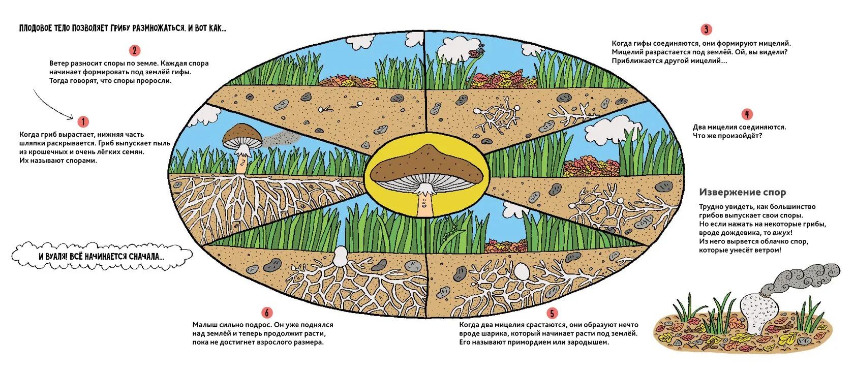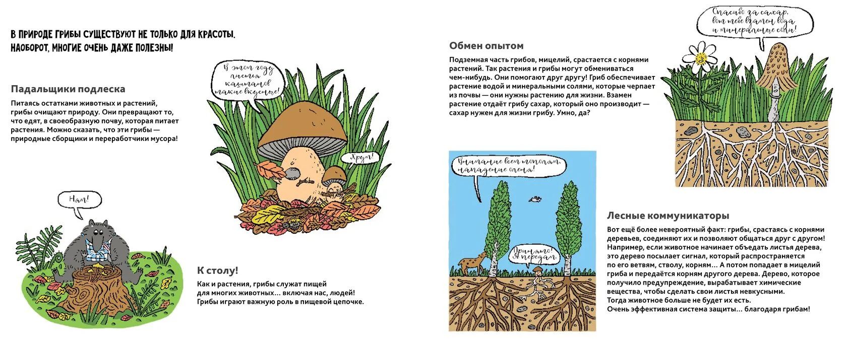 Эта книга познакомит тебя с таинственными существами, большая часть которых на самом деле…скрыта у нас под ногами! В конце книги ты найдешь краткий справочник, который поможет тебе при опознании гриба.