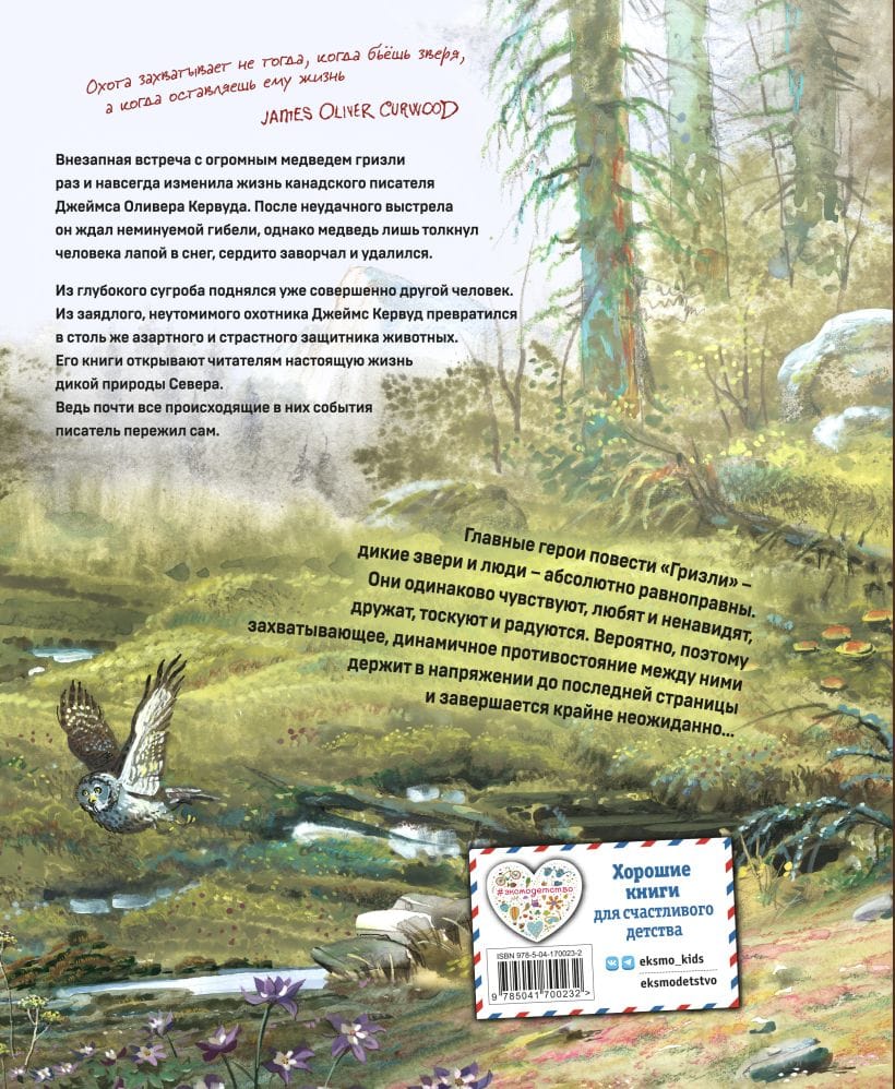 Роман Джеймса Оливера Кервуда «Гризли» погружает читателя в повседневную жизнь обитателей Скалистых гор на североамериканском континенте. Вместе с хозяином здешних мест, огромным медведем Тэром, и его маленьким другом Мусквой читатели проведут несколько месяцев от весны до зимы и переживут множество захватывающих событий.