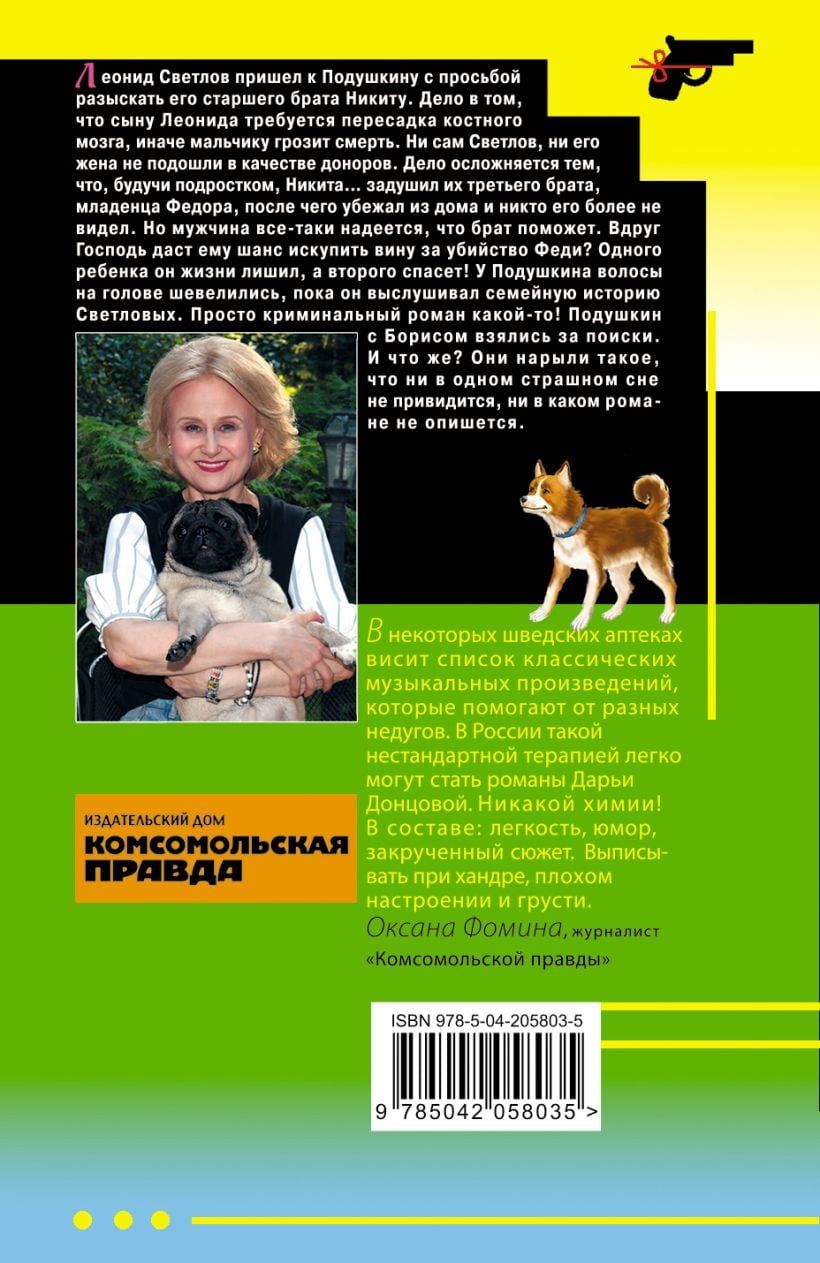 Леонид Светлов пришел к Подушкину с просьбой разыскать его старшего брата Никиту. Дело в том, что сыну Леонида требуется пересадка костного мозга, иначе мальчику грозит смерть. Ни сам Светлов, ни его жена не подошли в качестве доноров. Дело осложняется тем, что, будучи подростком, Никита… задушил их третьего брата, младенца Федора, после чего убежал из дома, и никто его более не видел. Но мужчина все-таки надеется, что брат поможет. Вдруг Господь даст ему шанс искупить вину за убийство Феди? Одного ребенка он жизни лишил, а второго спасет! У Подушкина волосы на голове шевелились, пока он выслушивал семейную историю Светловых. Просто криминальный роман какой-то! Подушкин с Борисом взялись за поиски. И что же? Они нарыли такое, что ни в одном страшном сне не привидится, ни в каком романе не опишется.