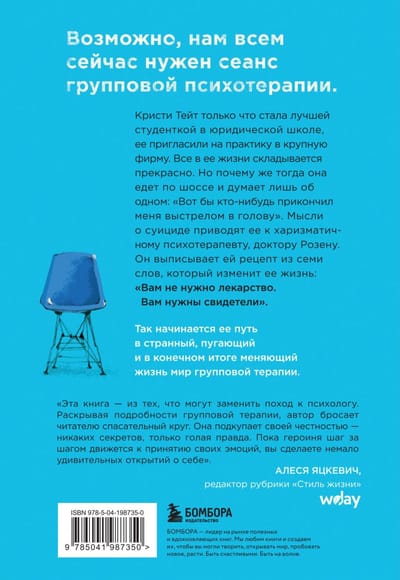 Это смелое, волнующее, искупительное путешествие внутрь себя под названием «групповая терапия». Оно разобьет вас на части, а после соберет заново, да так, чтобы все части, наконец, подошли друг другу.