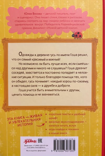 Но возможно ли быть главным, если смеёшься над другими и никого не слушаешь? Гоша дразнит соседей, хвастается и постоянно попадает в неловкие ситуации. И только благодаря помощи тех, кого он обидел, гусь понимает: каждый хорош по-своему, а настоящая сила — в дружбе и доброте.