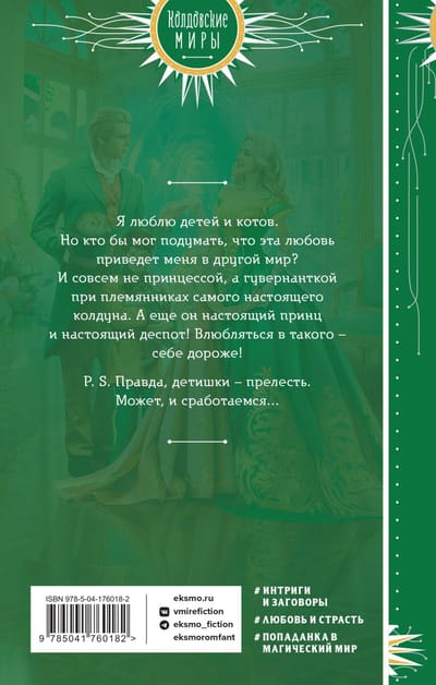 Я люблю детей и котов. Но кто мог подумать, что эта любовь приведет меня в другой мир? И совсем не принцессой, а гувернанткой при племянниках самого настоящего колдуна. А еще он настоящий принц и настоящий деспот. Влюбляться в такого — себе дороже.