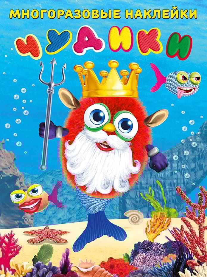«‎Чудики. Подводный царь»‎ из серии «‎Многоразовые наклейки «‎ЧУДИКИ»‎ – это пособие для развития мышления, мелкой моторики и фантазии. Пособие состоит из яркого фонового поля на плотном картоне с двумя нарисованными основами для создания подводных чудиков и набора многоразовых наклеек, необходимого для выполнения задания и украшения разворота. Пособия предназначены для дошкольного возраста.