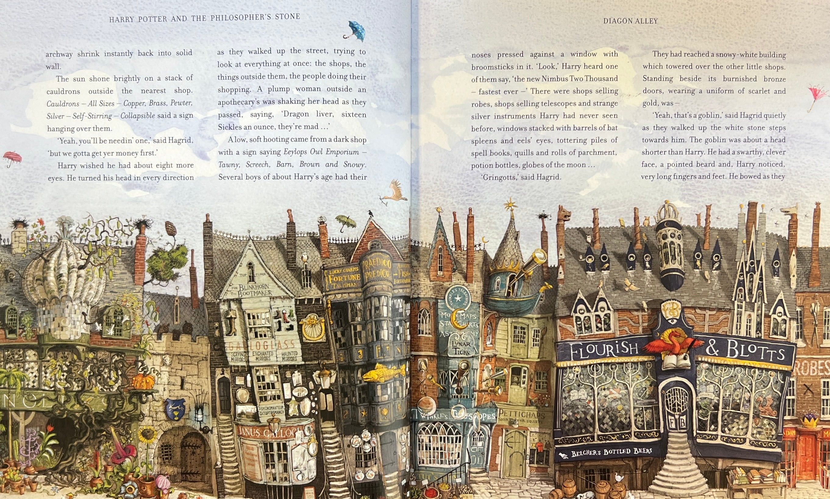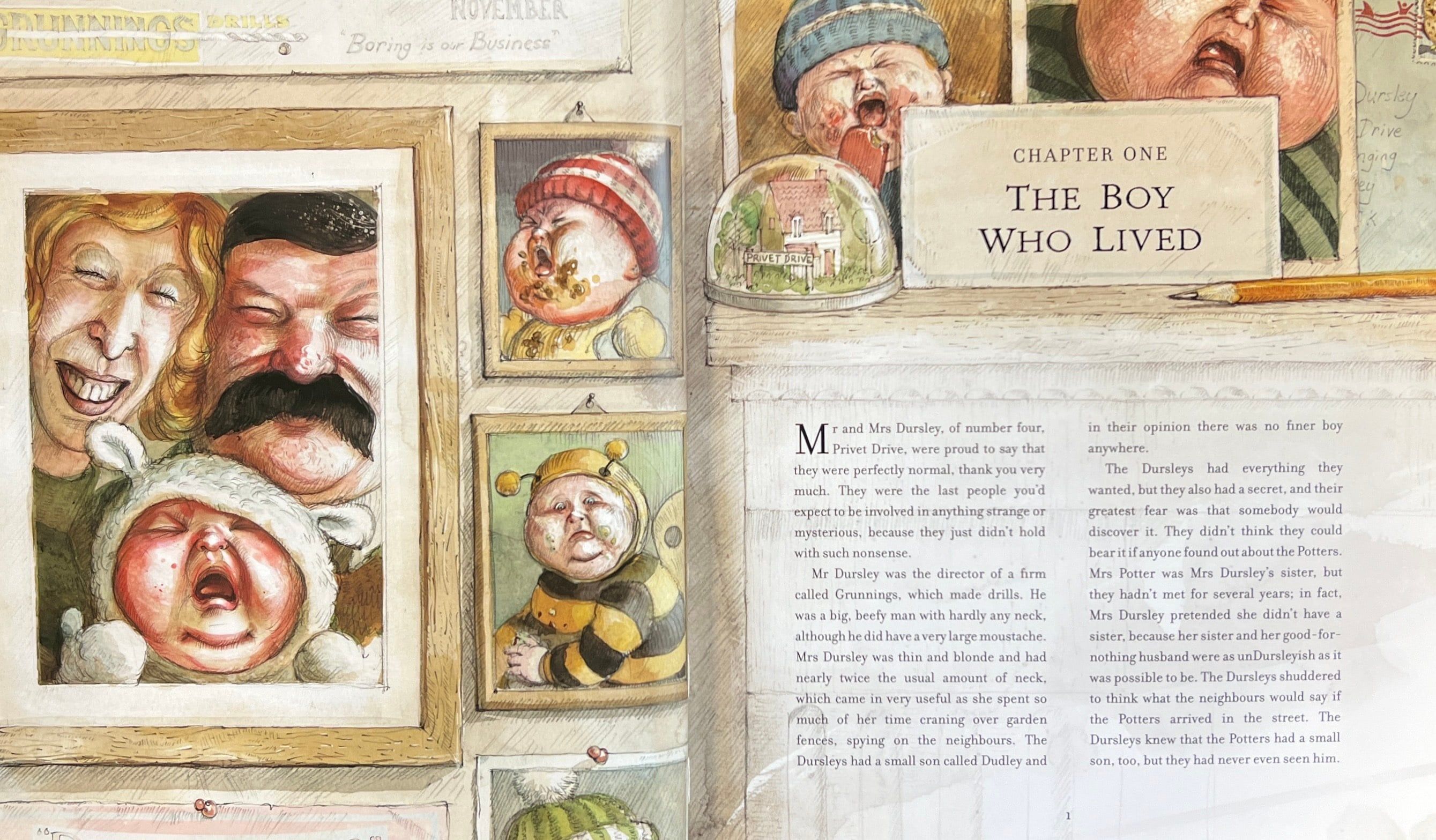 Harry Potter has no idea how famous he is. That's because he's being raised by his miserable aunt and uncle who are terrified Harry will learn that he's really a wizard, just as his parents were. But everything changes when Harry is summoned to attend an infamous school for wizards, and he begins to discover some clues about his illustrious birthright. From the surprising way he is greeted by a lovable giant, to the unique curriculum and colorful faculty at his unusual school, Harry finds himself drawn deep inside a mystical world he never knew existed and closer to his own noble destiny.
