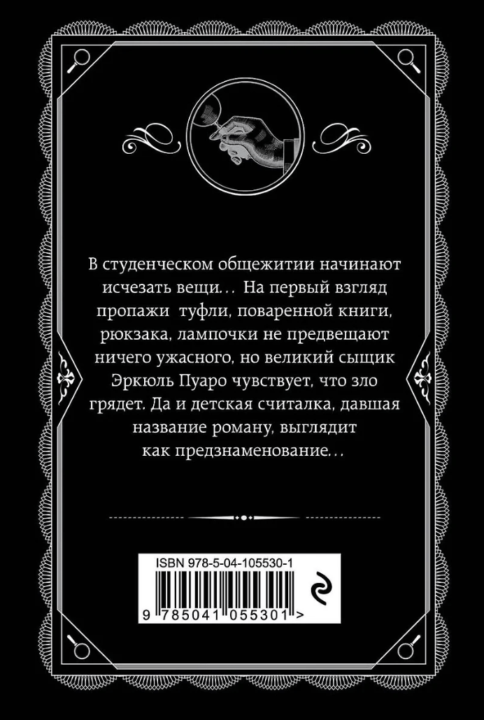 В студенческом общежитии начинают исчезать вещи… На первый взгляд, пропажи туфли, поваренной книги, рюкзака, лампочки – не предвещают ничего ужасного, но великий сыщик Эркюль Пуаро чувствует, что зло грядет. Да и детская считалка, давшая название роману, выглядит как предзнаменование…