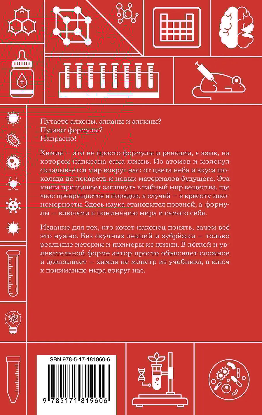 Издание для тех, кто хочет наконец понять, зачем всё это нужно. Без скучных лекций и зубрёжки — только реальные истории и примеры из жизни. В лёгкой и увлекательной форме автор просто объясняет сложное и доказывает — химия не монстр из учебника, а ключ к пониманию мира вокруг нас.