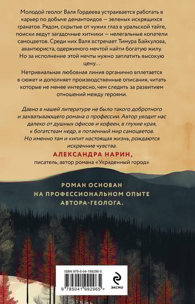 Окунитесь в захватывающий мир уральской тайги, где искрящиеся зеленые демантоиды скрывают не только природные тайны, но и судьбы тех, кто готов рискнуть всем ради их поиска. Этот роман — не просто история жизни молодого геолога. Это честный взгляд на профессию, который оживает благодаря реальному опыту автора.