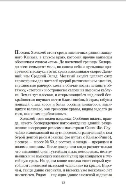 Самым значительным произведением Капоте многие считают роман «Хладнокровное убийство», основанный на истории реального преступления и раскрывающий природу насилия как сложного социального и психологического феномена. Книга Капоте, мгновенно ставшая бестселлером, породила особый жанр «романа-репортажа» и открыла путь прозе Нормана Мейлера и Тома Вулфа.