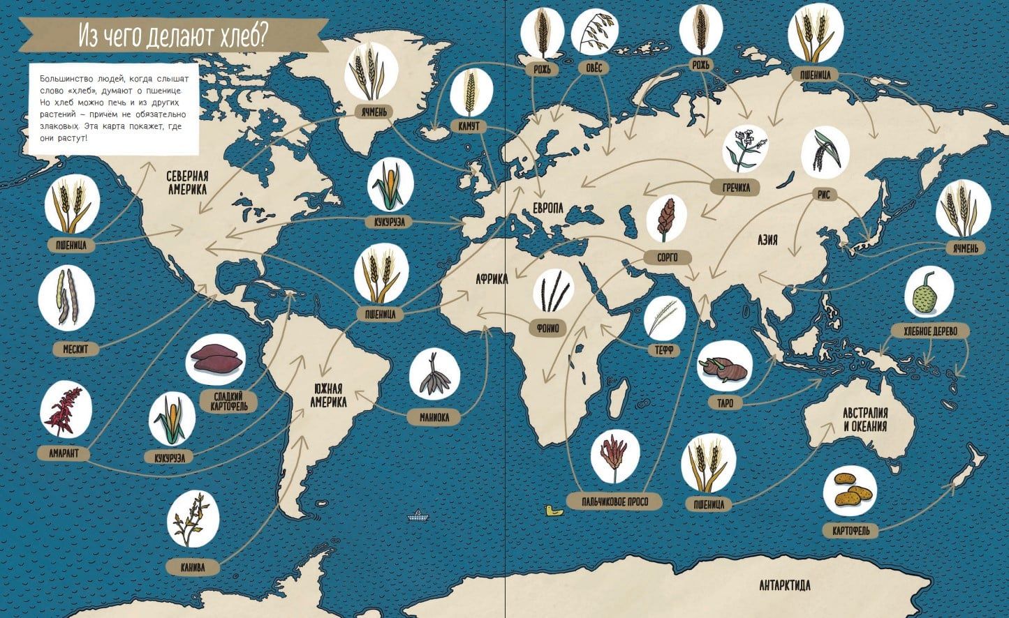 Хлеб ценят и любят везде. Давай отправимся в кругосветное хлебное путешествие. Побываем на разных континентах, в разных странах, городах и даже на полярной станции. А по дороге заглянем в местные булочные и пекарни и узнаем, как готовят хлеб по всему миру.