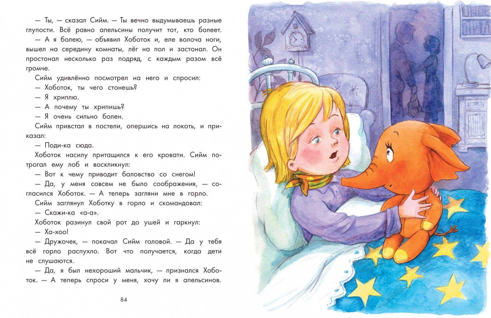 Писатель Ико Маран родился в Пскове в 1915 году, но вскоре со всей семьей переехал в Эстонию. Вся его жизнь была связана с литературой: он писал книги для детей и взрослых, работал на радио, заведовал литературной частью в различных театрах. Но именно детские книжки принесли Ико Марану славу, и в 1974 году писатель был удостоен национальной премии Смуула за свой вклад в детскую литературу. Слоник Хоботок - не просто игрушка. Когда мальчик Сийм получил его в подарок на день рождения, он не знал, что Слоняйка умеет говорить. Но очень скоро Хоботок стал Сийму настоящим другом. Теперь они всё делали вместе: играли в кубики и снежки, ездили к бабушке, ели сливы наперегонки. А ещё - помогали родителям: чистили пуговицы зубной пастой, спасали торт и брали с собой в дорогу чемодан муравьёв. Ведь даже если ты маленький, ты способен на большие дела! Для младшего школьного возраста.