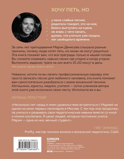 Программисты, юристы, медики, учителя общеобразовательных школ и представители других немузыкальных профессий — неважно, кто вы и чем занимаетесь по жизни. Эта книга докажет, что вокал — искусство для всех. Вперед, к мечте! Хочешь? Пой!