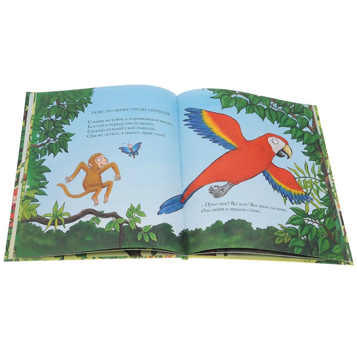 Сможет ли мотылёк помочь мартышке найти маму? Да, но только после многих проб и ошибок, ведь приметы всё время приводят их к «неправильным» зверям. Это познавательная, весёлая, добрая и красочная как сами джунгли книга, написанная авторами знаменитого Груффало. Сказка в стихах для чтения взрослыми детям. Информационная продукция для детей, не достигших возраста шести лет.
