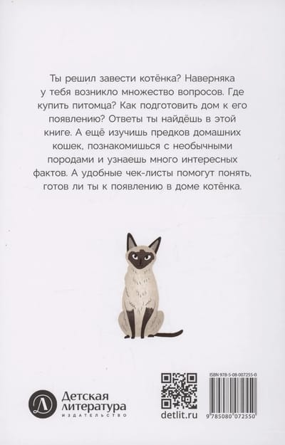 Ты решил завести котёнка? Наверняка у тебя возникло множество вопросов. Где купить питомца? Как подготовить дом к его появлению? Ответы ты найдёшь в этой книге. А ещё изучишь предков домашних кошек, познакомишься с необычными породами и узнаешь много интересных фактов. А удобные чек-листы помогут понять, готов ли ты к появлению в доме котёнка.