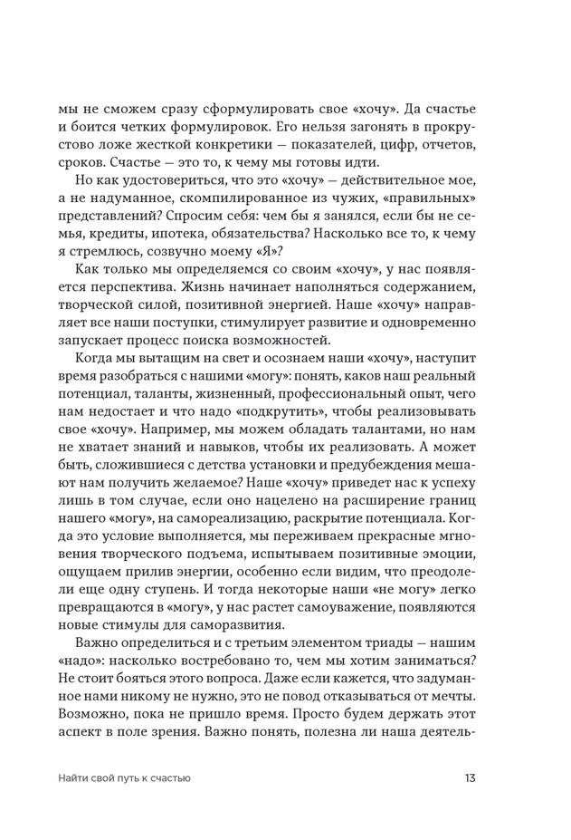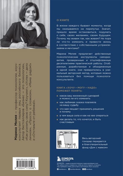 Марина Мелия — профессор психологии и коуч-консультант первых лиц российского бизнеса — предлагает действенные инструменты саморазвития, проверенные и отшлифованные десятилетиями практической работы. Объединенные в одной книге, они представляют собой уникальный авторский метод, которым можно пользоваться без помощи психолога-консультанта. Метод «хочу — могу — надо» помогает найти свою дорогу в жизни, быть верным себе в любой ситуации, опираться на свои сильные стороны и не бояться действовать с «непредрешенным результатом».