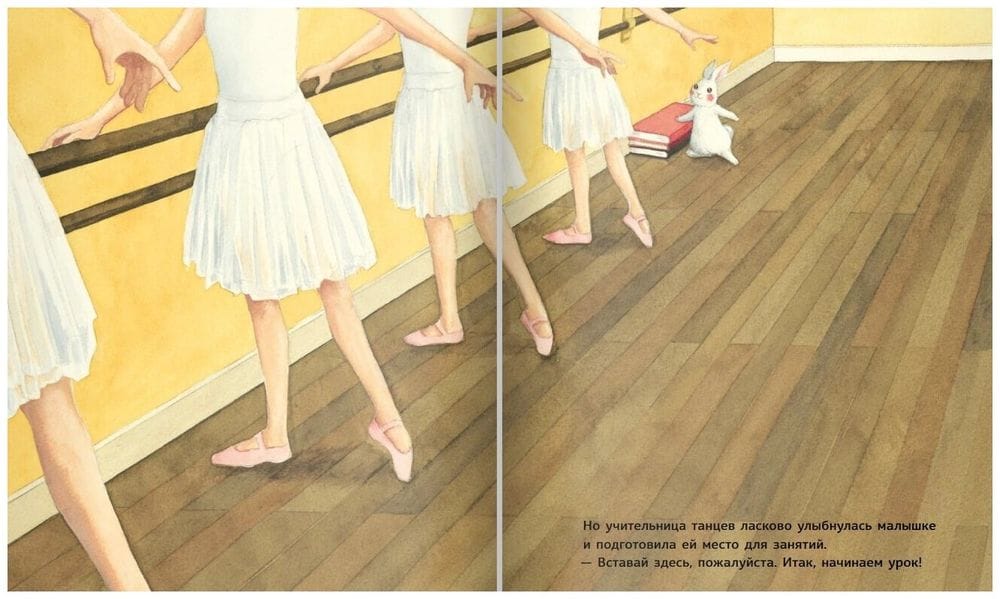 Заинька открывает для себя мир балета. Удивительно, но её пускают в класс и разрешают заниматься у станка вместе с юными балеринами! И пусть не всё получается сразу, в прыжках заиньке нет равных. Вскоре к занятиям присоединяются другие зайчата и кролики из леса. Теперь в балетном классе так весело! Но впереди отчётный концерт... Всех ли пригласят в нём участвовать? После прочтения этой книги юным читателям будет гораздо проще поверить в собственные силы и реализовать свой творческий потенциал. Удивительные пастельные иллюстрации передают эстетику балета и в то же время демонстрируют, с каким старанием маленькие зайчата становятся настоящими артистами.