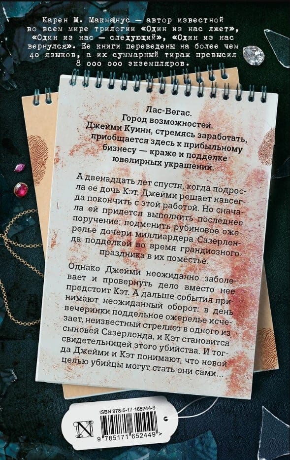 Лас-Вегас. Город возможностей. Джейми Куинн, стремясь заработать, приобщается здесь к прибыльному бизнесу — краже и подделке ювелирных украшений. А двенадцать лет спустя, когда подросла ее дочь Кэт, Джейми решает навсегда покончить с этой работой. Но сначала ей придется выполнить последнее поручение: подменить рубиновое ожерелье дочери миллиардера Сазерленда подделкой во время грандиозного праздника в их поместье. Однако Джейми неожиданно заболевает и провернуть дело вместо нее предстоит Кэт. А дальше события принимают неожиданный оборот: в день вечеринки поддельное ожерелье исчезает, неизвестный стреляет в одного из сыновей Сазерленда, и Кэт становится свидетельницей этого убийства. И тогда Джейми и Кэт понимают, что новой целью убийцы могут стать они сами…