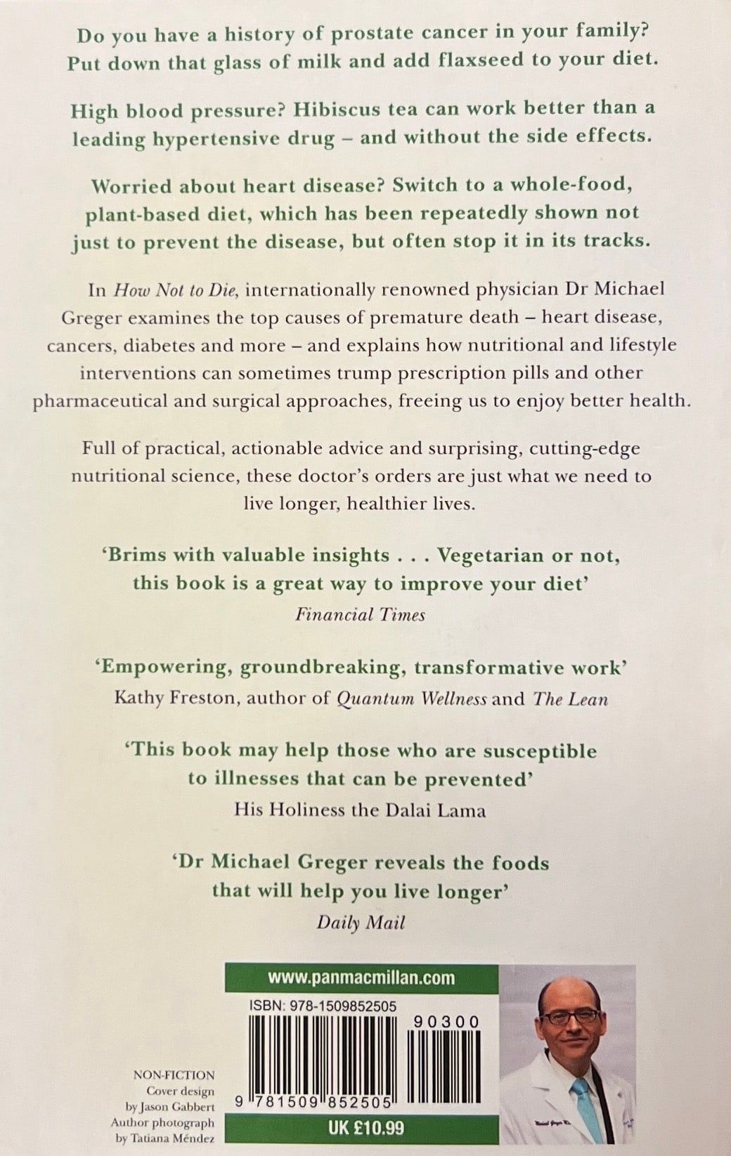 The international bestseller, Dr Michael Greger's How Not To Die gives effective, scientifically-proven nutritional advice to prevent our biggest killers – including heart disease, breast cancer, prostate cancer, high blood pressure and diabetes – and reveals the astounding health benefits that simple dietary choices can provide.