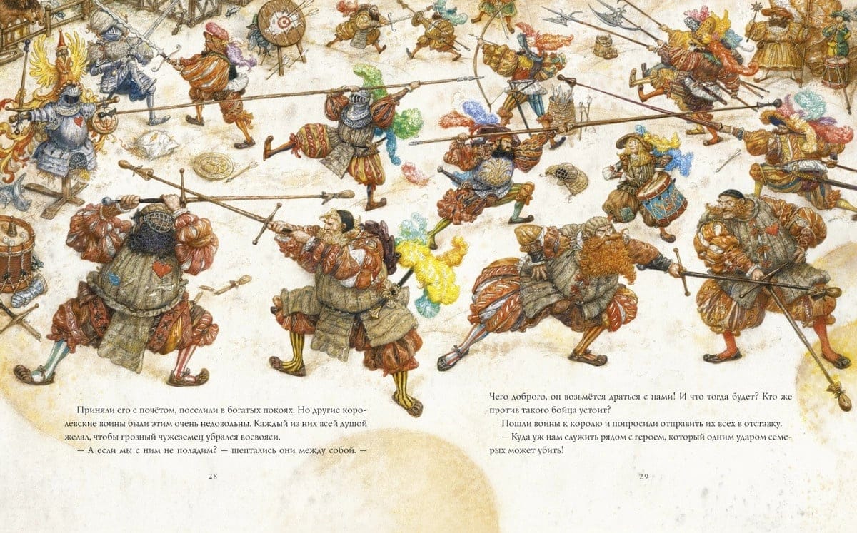 Если ты только маленький портной, но у тебя отважное сердце, а главное – безудержная фантазия и безграничная вера в себя, то тебя непременно настигнут приключения. Так и в сказке «Храбрый портняжка» братьев Гримм все начинается самым обычным утром с покупки варенья для завтрака, а закончится история королевской короной на голове портного. А в промежутке между этими событиями Вас ждут удивительные истории и встречи со злыми великанами, свирепым единорогом и гигантским вепрем. Иллюстрации для этой книги, погружающие читателя в сказочную атмосферу средневековой Германии, нарисовал замечательный и очень талантливый художник Антон Ломаев. За работу над этой книгой, он был награжден Почетным дипломом Международного Совета по детской книге IBBY (International Board or Books for Young People). А сама книга была включена в Почетный список IBBY (IBBY Honour List 2018) в числе лучших в мире книг для детей.