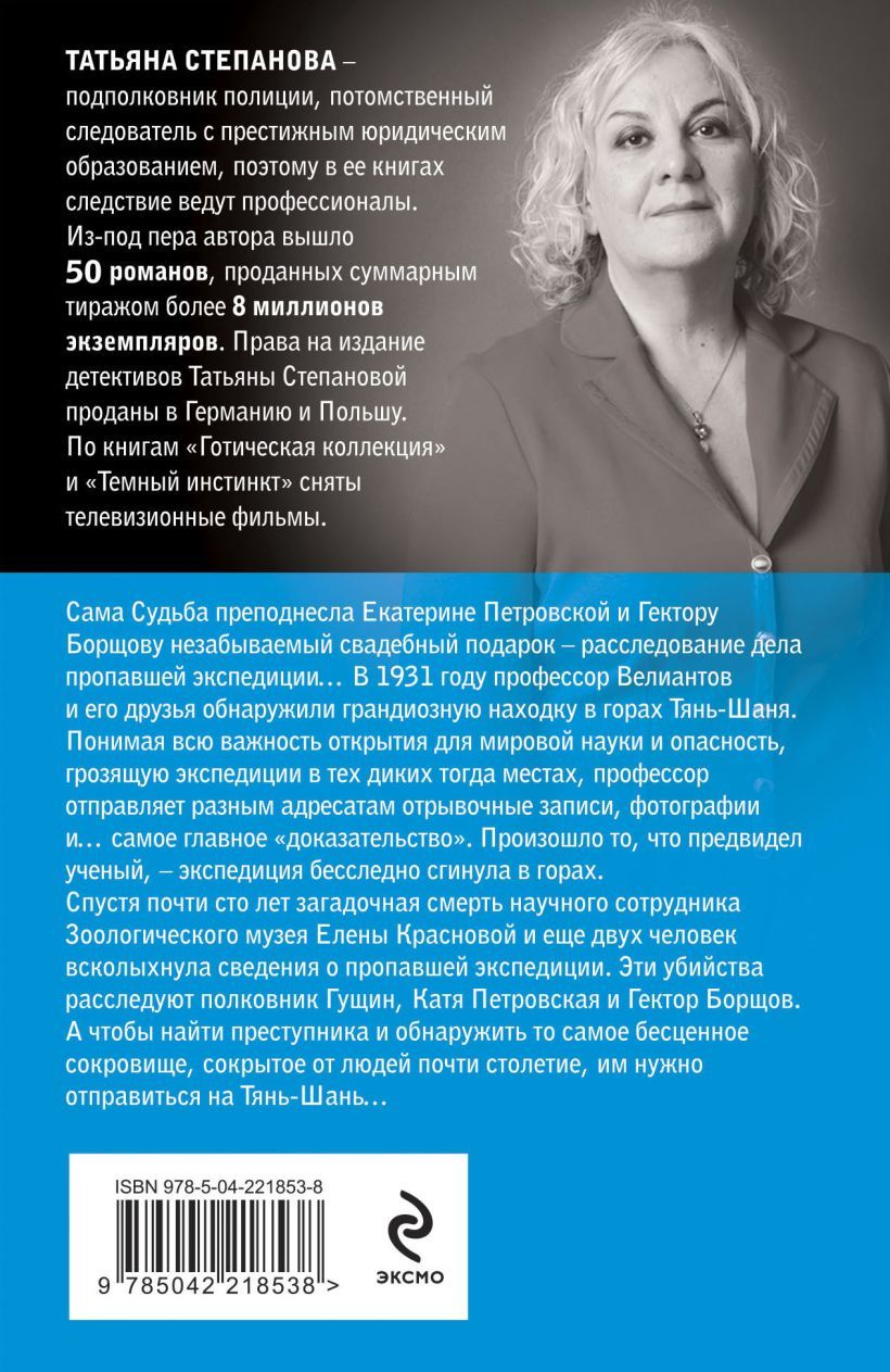 Спустя почти сто лет загадочная смерть научного сотрудника Зоологического музея Елены Красновой и еще двух человек всколыхнули сведения о Пропавшей экспедиции. Эти убийства расследует полковник Гущин, Катя Петровская и Гектор Борщов. А чтобы найти преступника и обнаружить то самое бесценное сокровище, сокрытое от людей почти столетие, им нужно отправиться на Тянь-Шань…