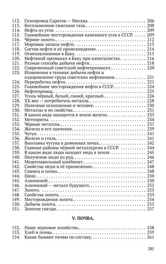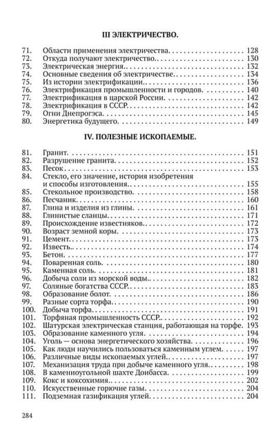 Хрестоматия содержит статьи по курсу неживой природы, входящему в программу 4 класса начальной школы. Материал включает в себя 5 обширных тем: «Вода», «Воздух», «Электричество», «Полезные ископаемые» и «Почва». Учащиеся узнают о том, какие природные явления и физические законы легли в основу передовых изобретений советских ученых, какие технологии используются при освоении природных богатств России и каким образом были сделаны некоторые важнейшие научные открытия.