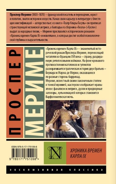 «Хроника времен Карла IX» - знаменитый исторический роман Проспера Мериме, переносящий читателя во Францию XVI века - страну, раздираемую религиозными войнами. На фоне кровавого противостояния католиков и гугенотов разворачивается трагическая история двух братьев - Бернара и Жоржа де Мержи, оказавшихся по разные стороны баррикад. Мериме, известный своим лаконичным стилем и тонкой иронией, мастерски изображает нравы эпохи: фанатизм и интриги, дуэли и придворные заговоры, кульминацией которых становится Варфоломеевская ночь.