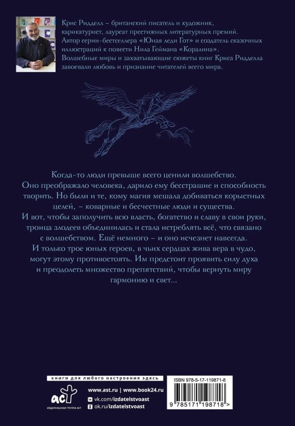 Крис Ридделл – британский писатель и художник, карикатурист, лауреат престижных литературных премий. Волшебные миры, захватывающие сюжеты и фантастические иллюстрации детских книг Криса Ридделла завоевали любовь и признание читателей всего мира.