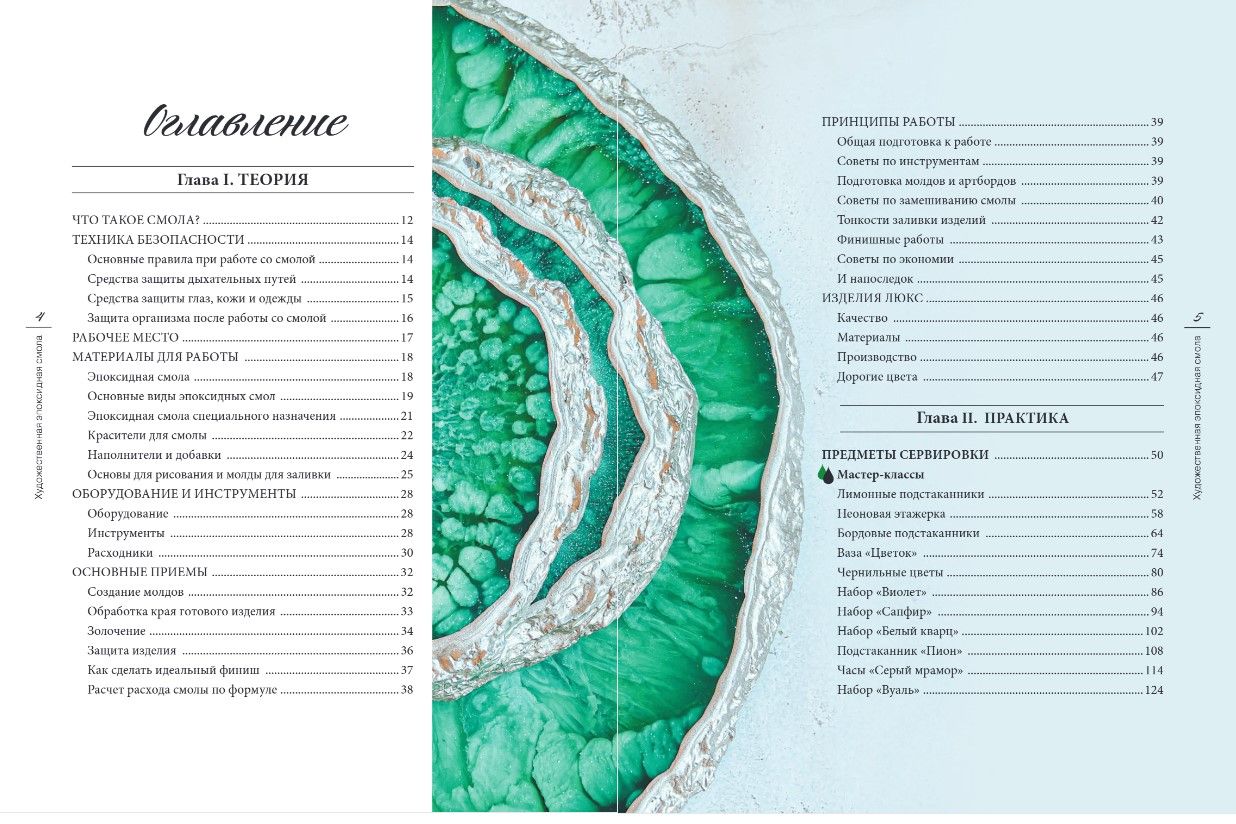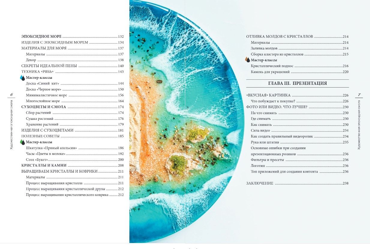 - Пошаговые иллюстрированные инструкции для всех видов изделий Resin Art: часы, картины, вазы, посуда, бижутерия и даже мебель;