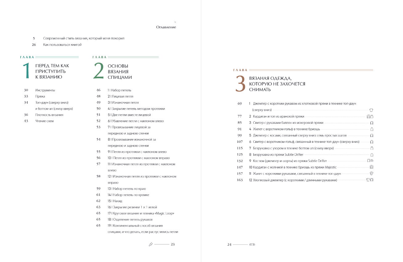В книге она собрала 20 современных моделей свитеров, кардиганов, жилетов, шапок и шарфов в техниках топ-даун, бриошь и вязание снизу вверх, рассчитанных на размеры от XS до 3XL. Вам не нужно самостоятельно подсчитывать петли для получения нужного размера — автор уже сделала это за вас! А QR-коды на страницах помогут увидеть справочные видеоролики.
