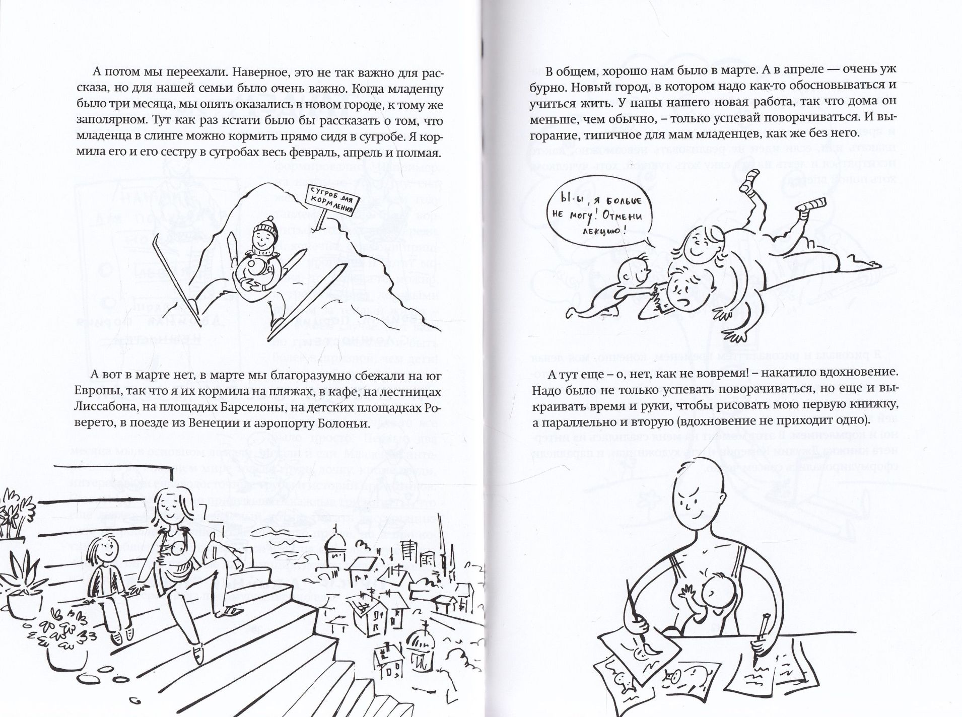 Эта короткая, но очень насыщенная книжка в легкой и немного эксцентричной манере рассказывает о девяти годах обычного материнства автора и об ее уникальном опыте грудного вскармливания. Кроме советов по организации грудного вскармливания и рассказа об особенностях кормления одновременно двоих малышей, читатели найдут в книге размышления о творчестве, дружбе, путешествиях с маленькими детьми. А еще - очень много картинок.
